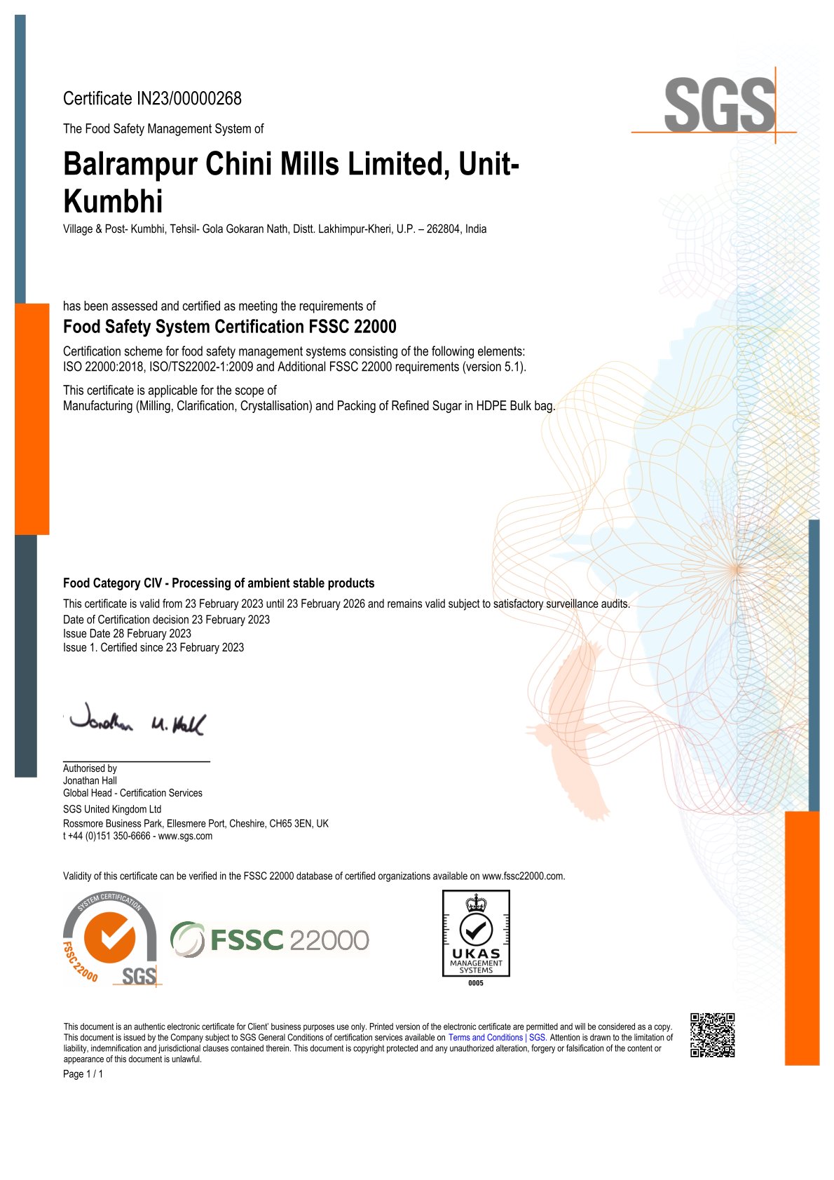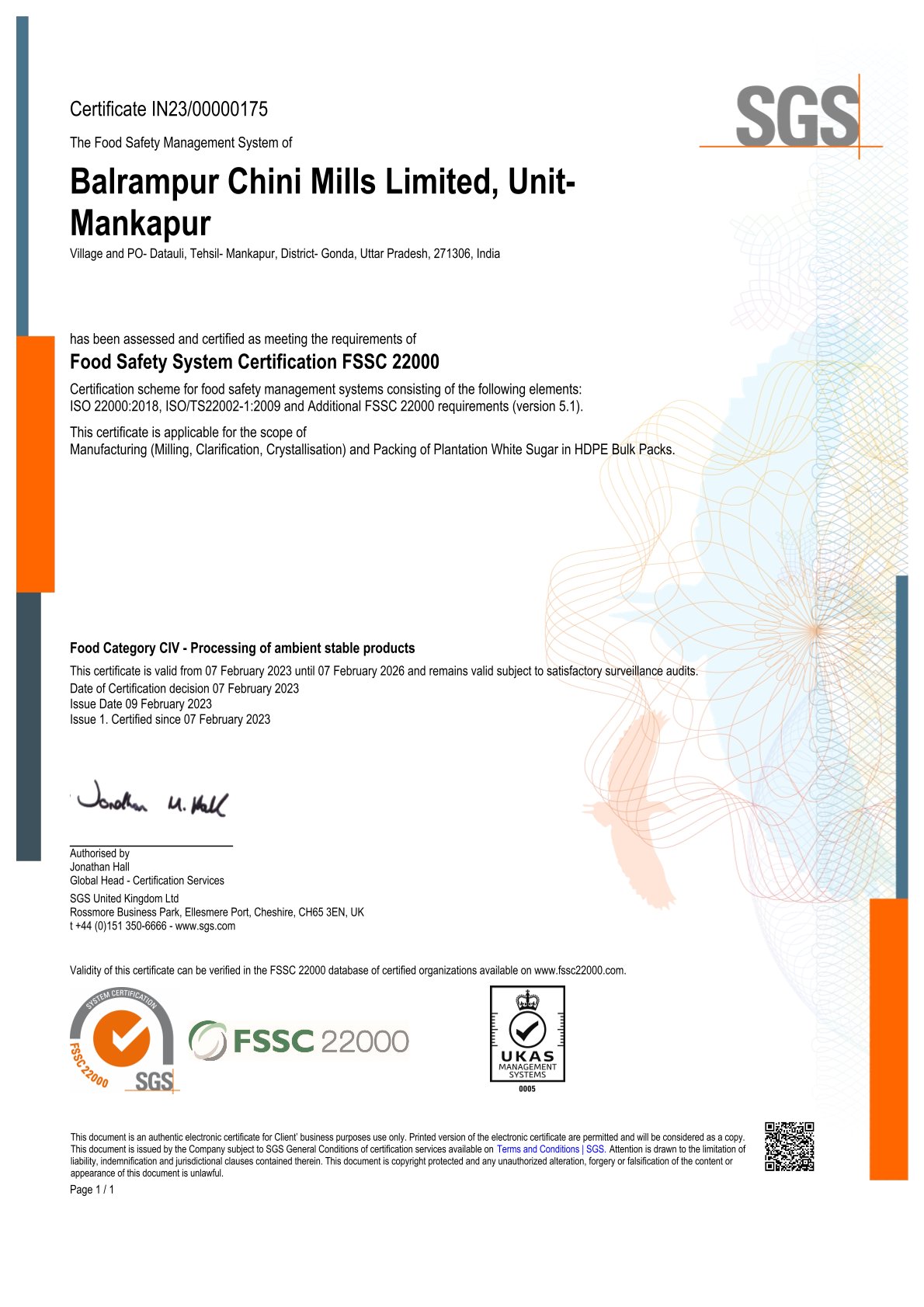Balrampur Chini Mills Limited has exercised due diligence in the development of this website, and we affirm the accuracy of all information at the time of publication or last modification. The company retains the right to modify this site without prior notice.